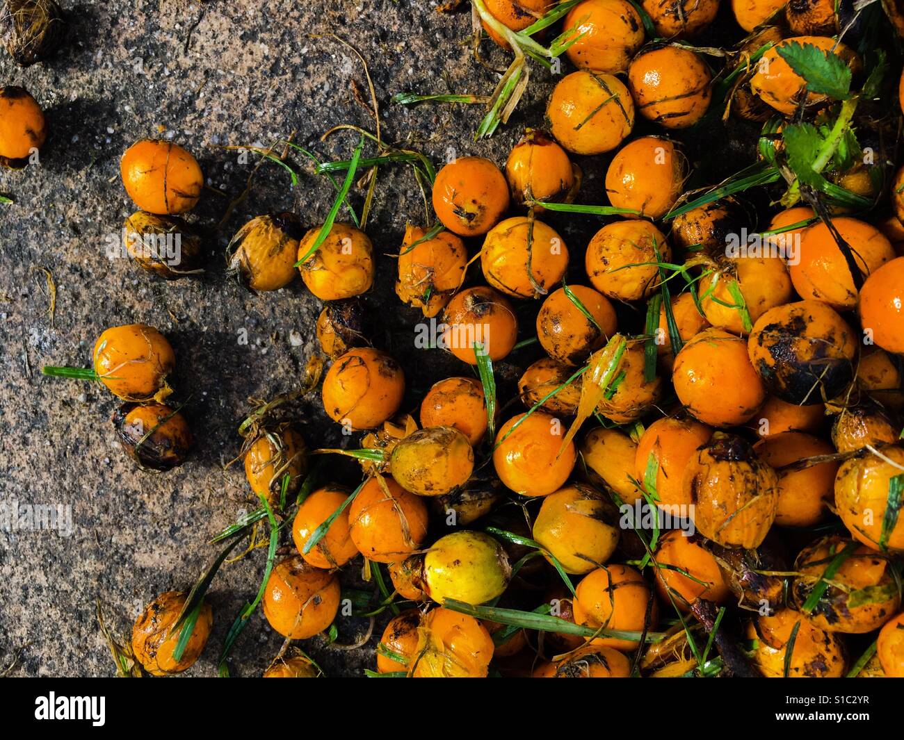 The species is widely. It tastes a lot like pineapple. Are the Orange palm tree fruit edible.